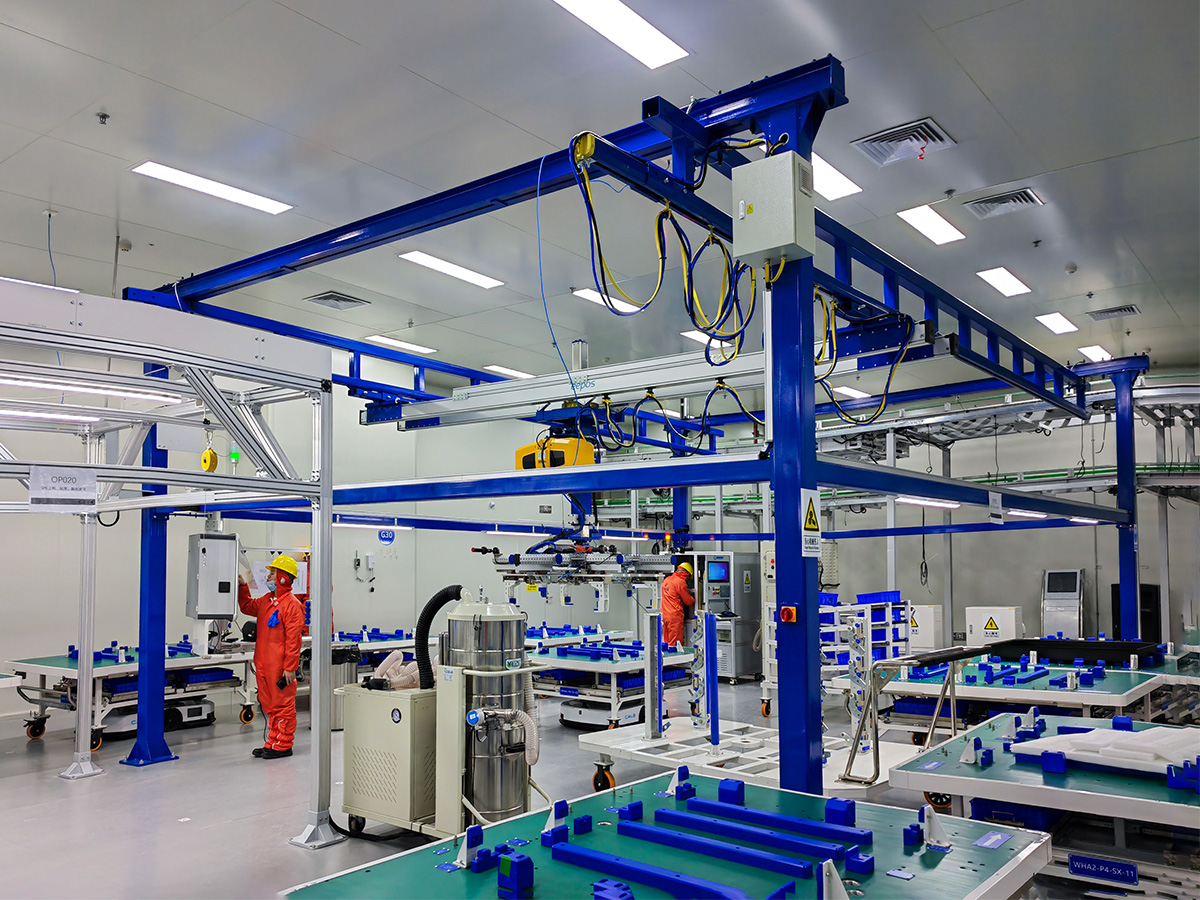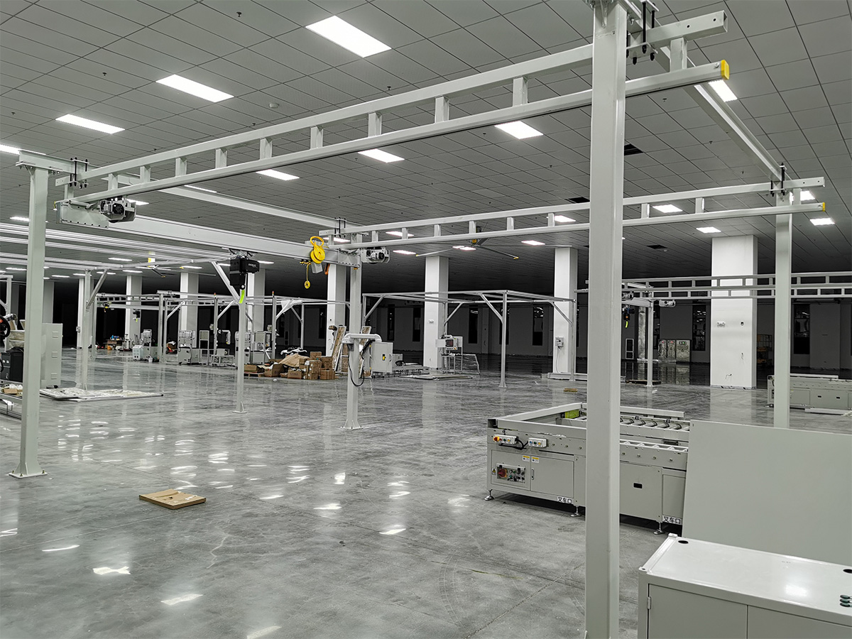 采用自立式設(shè)計(jì)的起重機(jī),無(wú)需額外支撐結(jié)構(gòu),結(jié)構(gòu)緊湊,占用空間小,非常適合湖南宜軒國(guó)宣電池有限公司空間有限的潔凈室環(huán)境。這種設(shè)計(jì)不僅優(yōu)化了生產(chǎn)空間布局,還減少了因額外支撐結(jié)構(gòu)可能帶來(lái)的清潔難題。