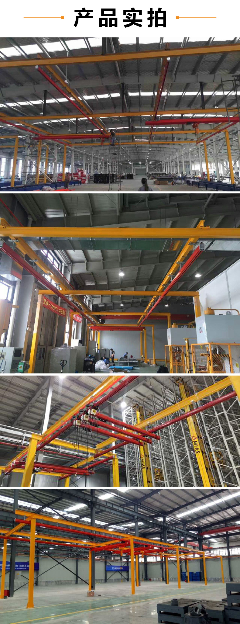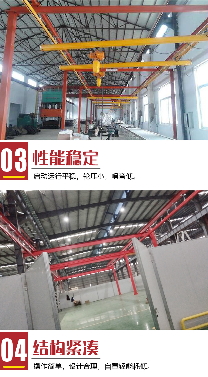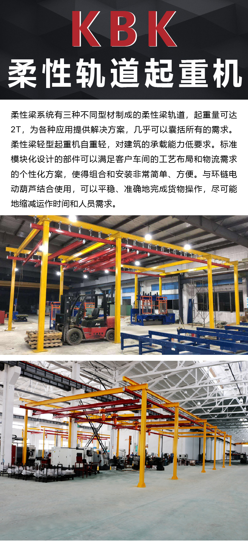 2.柔性組合式懸掛起重機自重特別輕,滑輪與軌道之間的摩擦力很小,操作輕便,可以很輕松的用手移動,