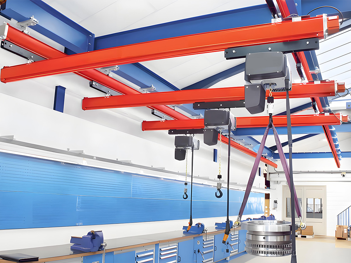 KBK柔性組合式雙梁懸掛起重機,是利用標(biāo)準(zhǔn)直線段軌道和其他輔助標(biāo)準(zhǔn)件組合而成。主梁兩端的小車行走部分,可在與主梁方向垂直的兩條平行吊掛KBK軌道中運行。雙梁與環(huán)鏈電動葫蘆配套使用,電動葫蘆運行小車可以沿著主梁方向運行。這樣產(chǎn)品用于平面物流輸送,適用于車間倉庫等場地,KBK柔性組合式懸掛雙梁起重機由于采用了雙軌道平行式組合梁增加了主梁的承載能力,因此可適用于較大的跨度和較重物料的搬運!
