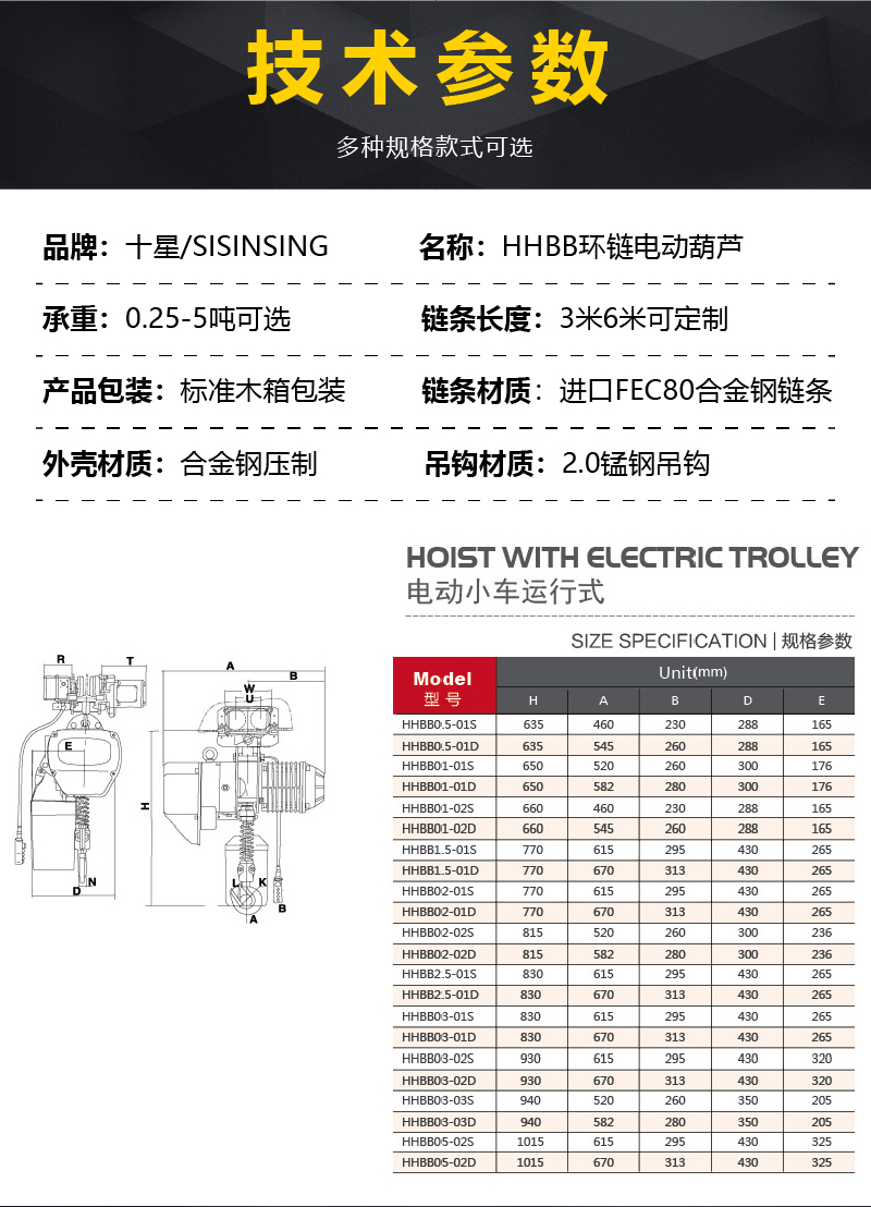 十星HHBB型運行式環(huán)鏈電動葫蘆1噸2噸3噸5噸鬼頭式 380V起重機