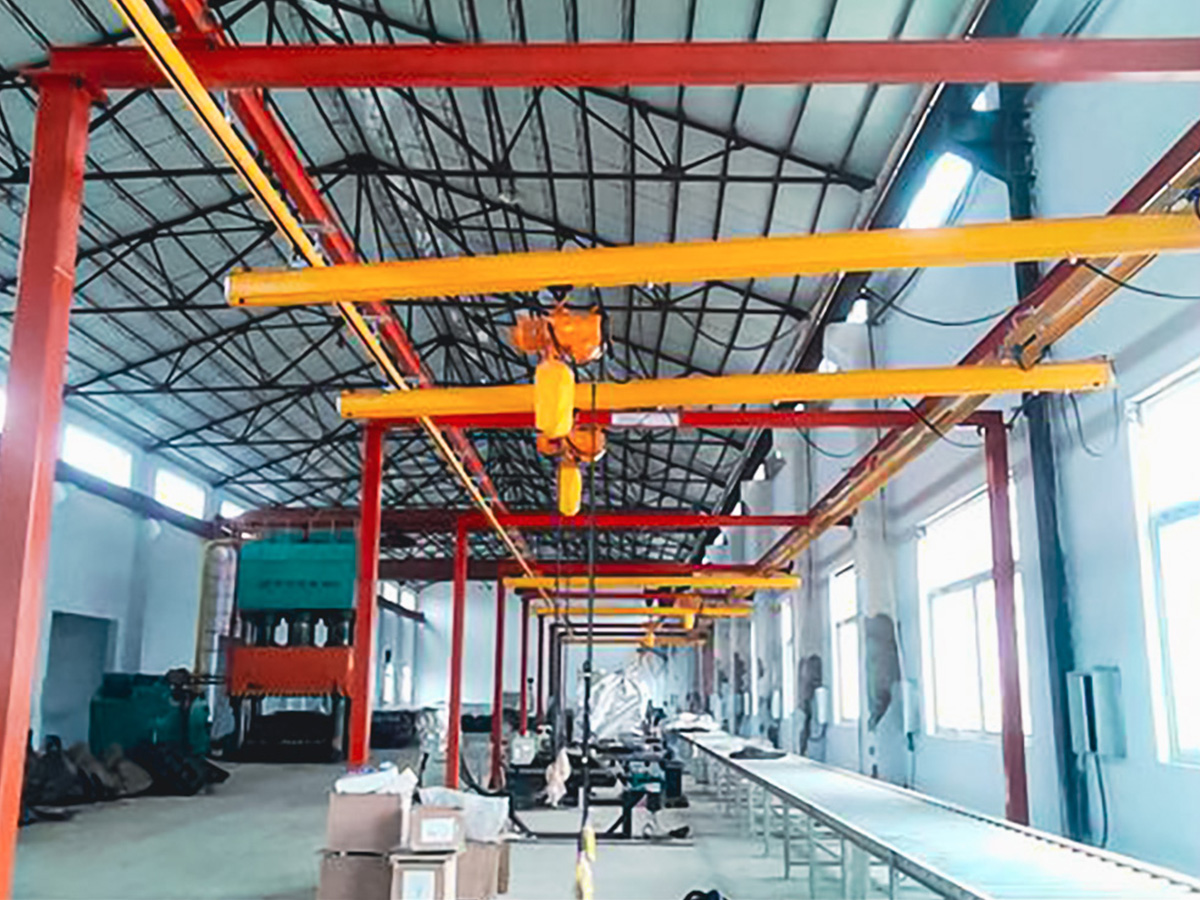 1.柔性組合式懸掛起重機的懸掛方式根據(jù)客戶的廠房現(xiàn)有條件不同可靈活變化,有多種方式可供選擇。