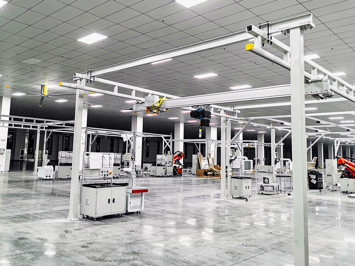 采用自立式設(shè)計(jì)的起重機(jī),無(wú)需額外支撐結(jié)構(gòu),結(jié)構(gòu)緊湊,占用空間小,非常適合湖南宜軒國(guó)宣電池有限公司空間有限的潔凈室環(huán)境。這種設(shè)計(jì)不僅優(yōu)化了生產(chǎn)空間布局,還減少了因額外支撐結(jié)構(gòu)可能帶來(lái)的清潔難題。