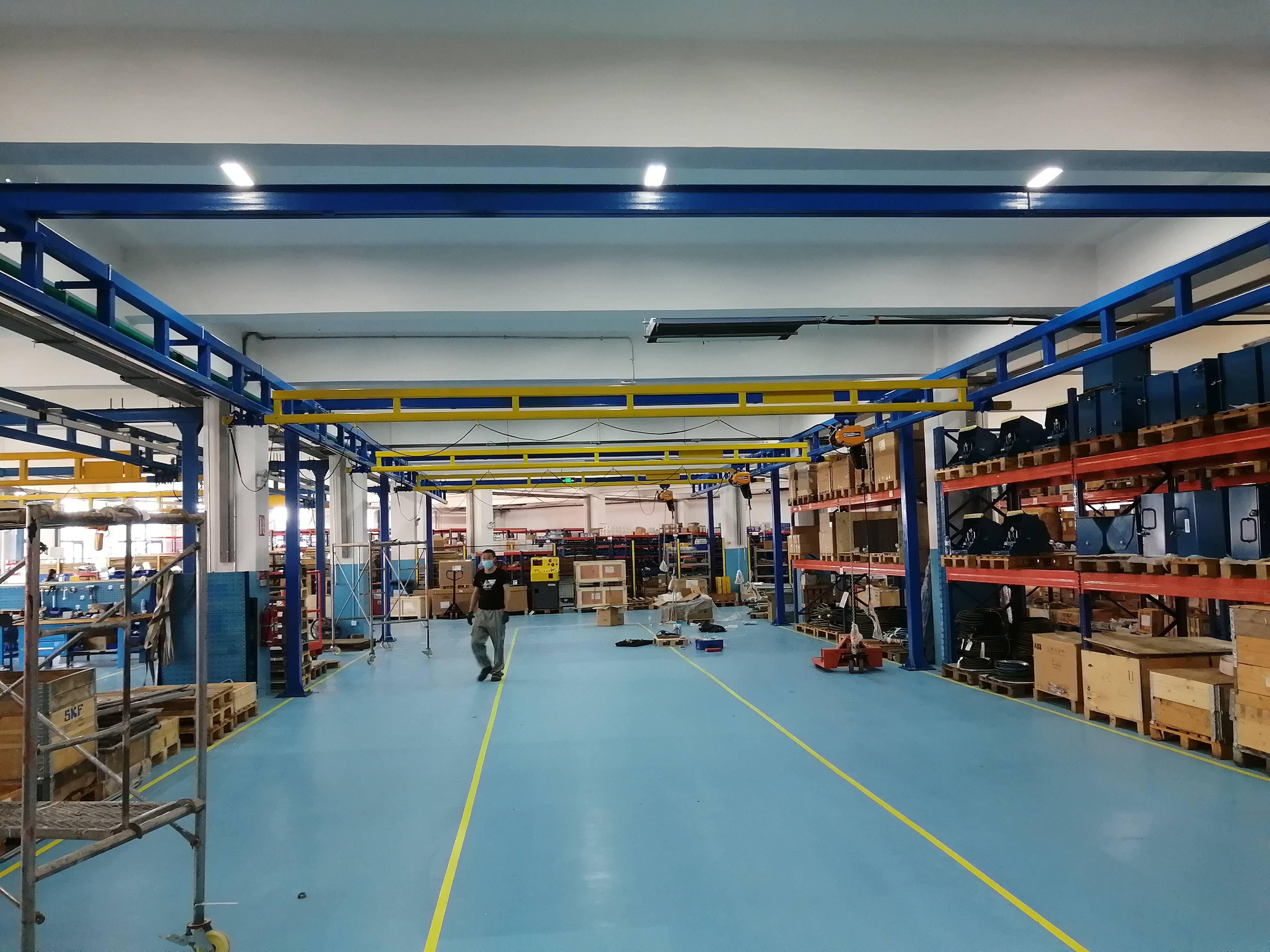 客戶是一家外資企業(yè),廠房在二樓,并且工廠屋頂高度較低,在空間有限的工況下,必須采用更輕便的搬運解決方案。